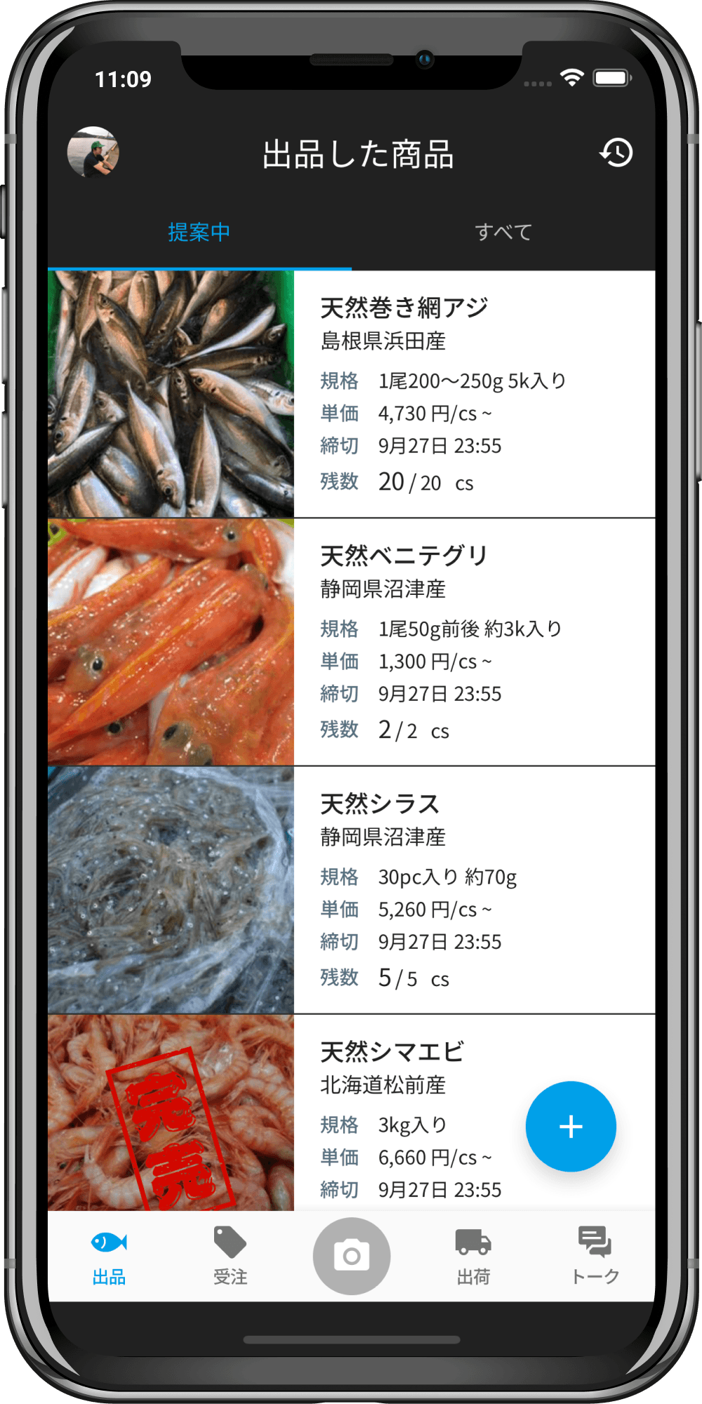 鮮魚取引・青果取引専用のスマホアプリです。